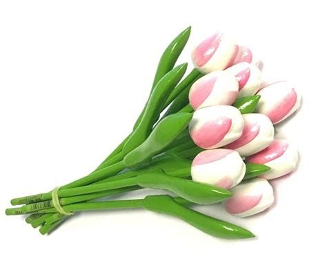 Bij Woodenshoecompany.com bestel je snel en eenvoudig jouw roze/witte houten tulpen boeket met 9 stuks. Kies voor een duurzaam en stijlvol alternatief voor verse bloemen.