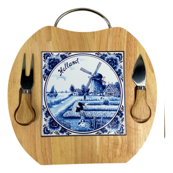 Kaasplank met Delfts Blauwe Tegel en Bestekset